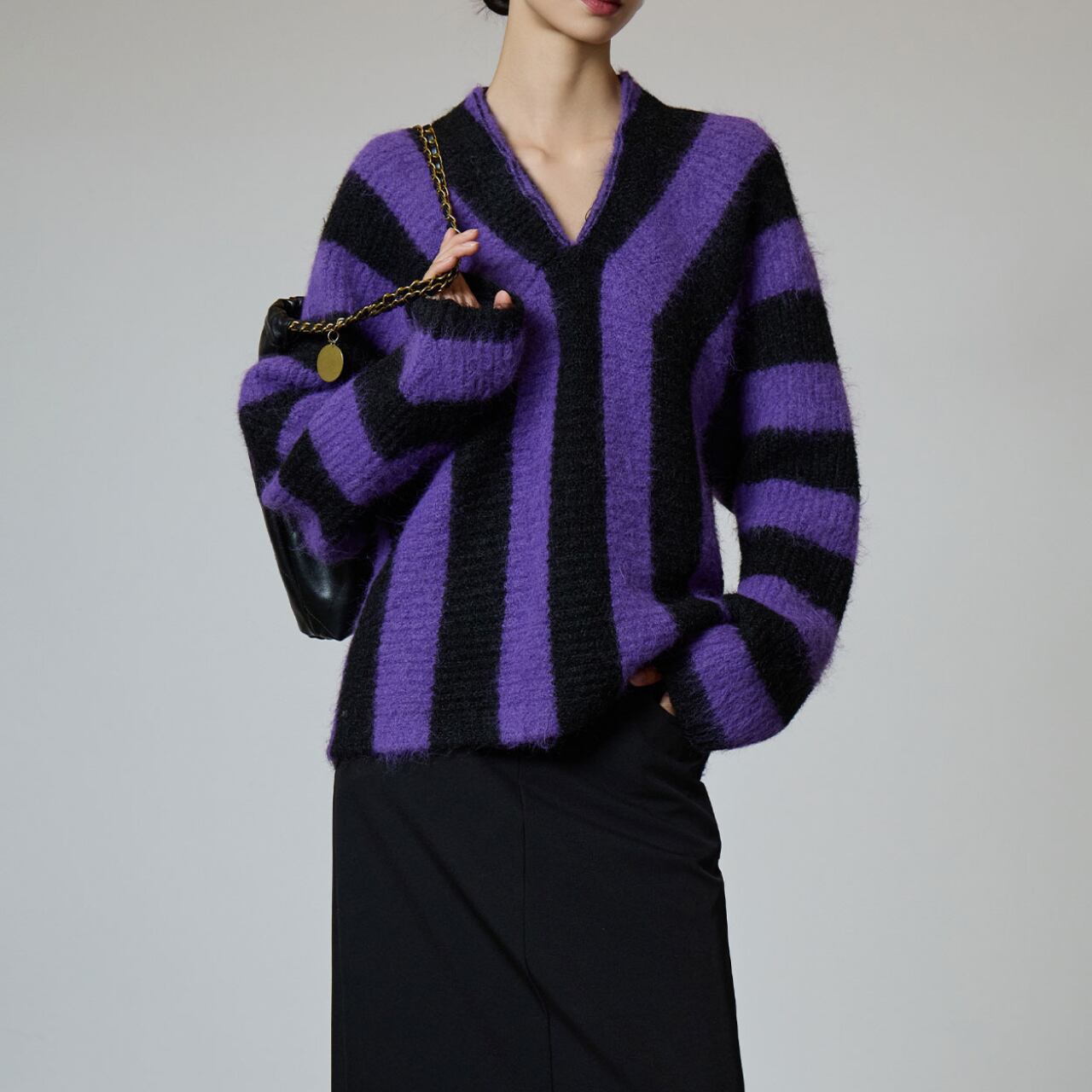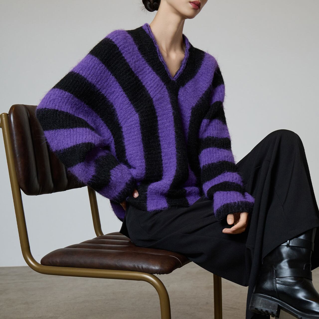 Vibrant stripe knit top A0003