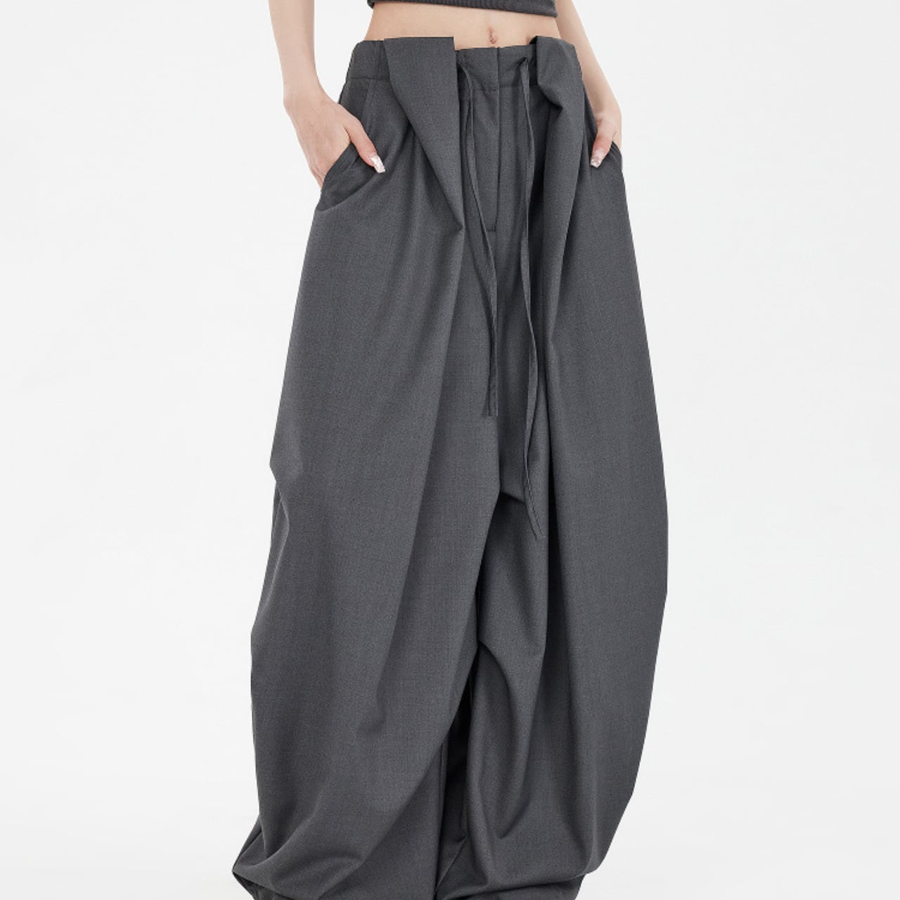 Drape volume pants A0053