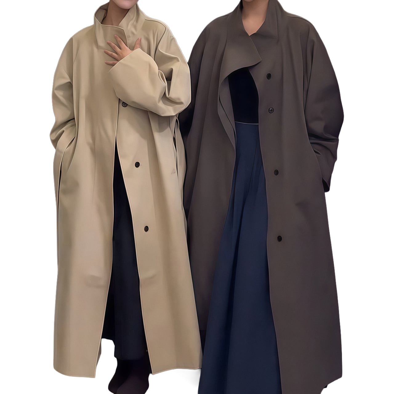 Minimalist long trench coat A0057