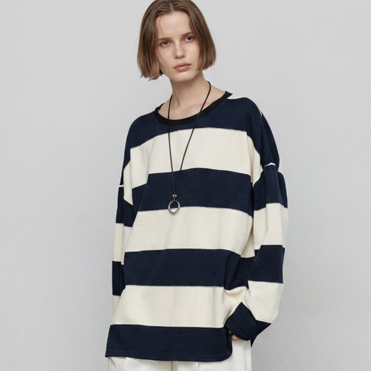 ■Size(cm) S:肩幅67, 胸囲120, 着丈72, 袖丈48 M:肩幅68, 胸囲124, 着丈73, 袖丈49 L:肩幅69, 胸囲128, 着丈74cm, 袖丈50 *1-3cmの誤差が生じる場合がございます。 ■Material Polyester:51% Cotton:49% ■Color Ecru/Navy ■お届けについて ・通常1〜2週間前後でお届けいたします。 ・商品により3週間以上かかる場合もあります。 ・一点ずつ丁寧に検品を行い、発送いたします。 ■Care ・30℃以下の手洗い推奨。 ・漂白剤 / タンブラー乾燥不可。 ・シルエットを保つため、平干ししてください。 ・アイロンは当て布をし、低温でご使用ください。 ■注意事項 ・万が一在庫切れとなった際は、速やかにご連絡の上 全額返金の手続きをさせていただきます。 ・厳格な基準に基づき検品を行っておりますが、微細な傷や汚れがある場合はご容赦ください。 ・光の当たり方やモニター環境により、実物と色合いが異なる場合がございます。 ・イメージ違いやサイズ相違等、お客様のご都合による返品・交換・キャンセルは承っておりません。 上記をご理解の上、お買い物をお楽しみください。 ———————————— ■ご購入前にこちらをお読みください →https://official.uaenstudio.com/about ■TOP →https://official.uaenstudio.com