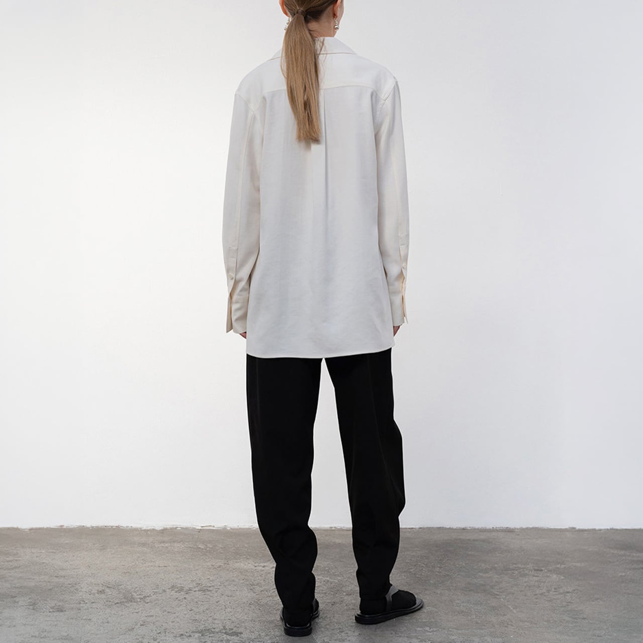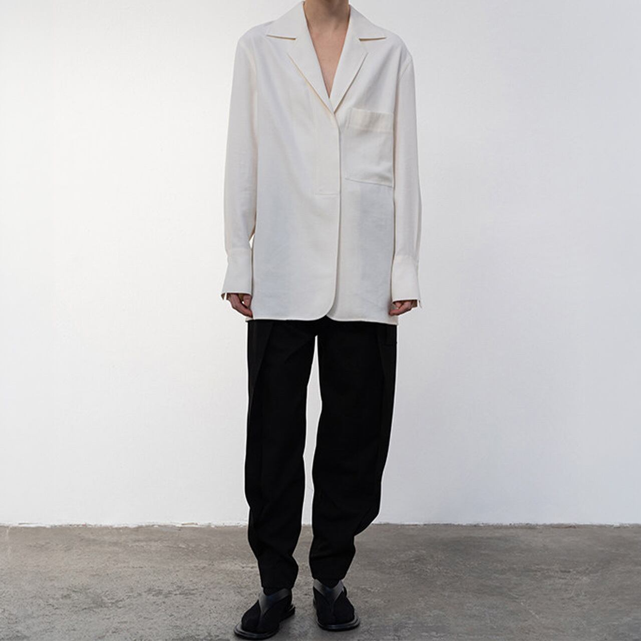 ■Size(cm) S:肩幅47, 胸囲106, 着丈77, 袖丈61 M:肩幅48, 胸囲110, 着丈78, 袖丈62 L:肩幅49, 胸囲114, 着丈79cm, 袖丈63 *1-3cmの誤差が生じる場合がございます。 ■Material Rayon:93% Polyester:7% ■Color Ivory Charcoal ■お届けについて ・通常1〜2週間前後でお届けいたします。 ・商品により3週間以上かかる場合もあります。 ・一点ずつ丁寧に検品を行い、発送いたします。 ■Care ・レーヨン特有の繊細な質感を維持するため、ドライクリーニングを推奨しております。 ・摩擦や水濡れによる色移りにご注意ください。 ■注意事項 ・素材の特性上お届け時に多少の畳みシワが生じる場合がございますが、数日間ハンガーにかけていただくことで自然に軽減されます。 ・万が一在庫切れとなった際は、速やかにご連絡の上 全額返金の手続きをさせていただきます。 ・厳格な基準に基づき検品を行っておりますが、微細な傷や汚れがある場合はご容赦ください。 ・光の当たり方やモニター環境により、実物と色合いが異なる場合がございます。 ・イメージ違いやサイズ相違等、お客様のご都合による返品・交換・キャンセルは承っておりません。 上記をご理解の上、お買い物をお楽しみください。 ———————————— ■ご購入前にこちらをお読みください →https://official.uaenstudio.com/about ■TOP →https://official.uaenstudio.com