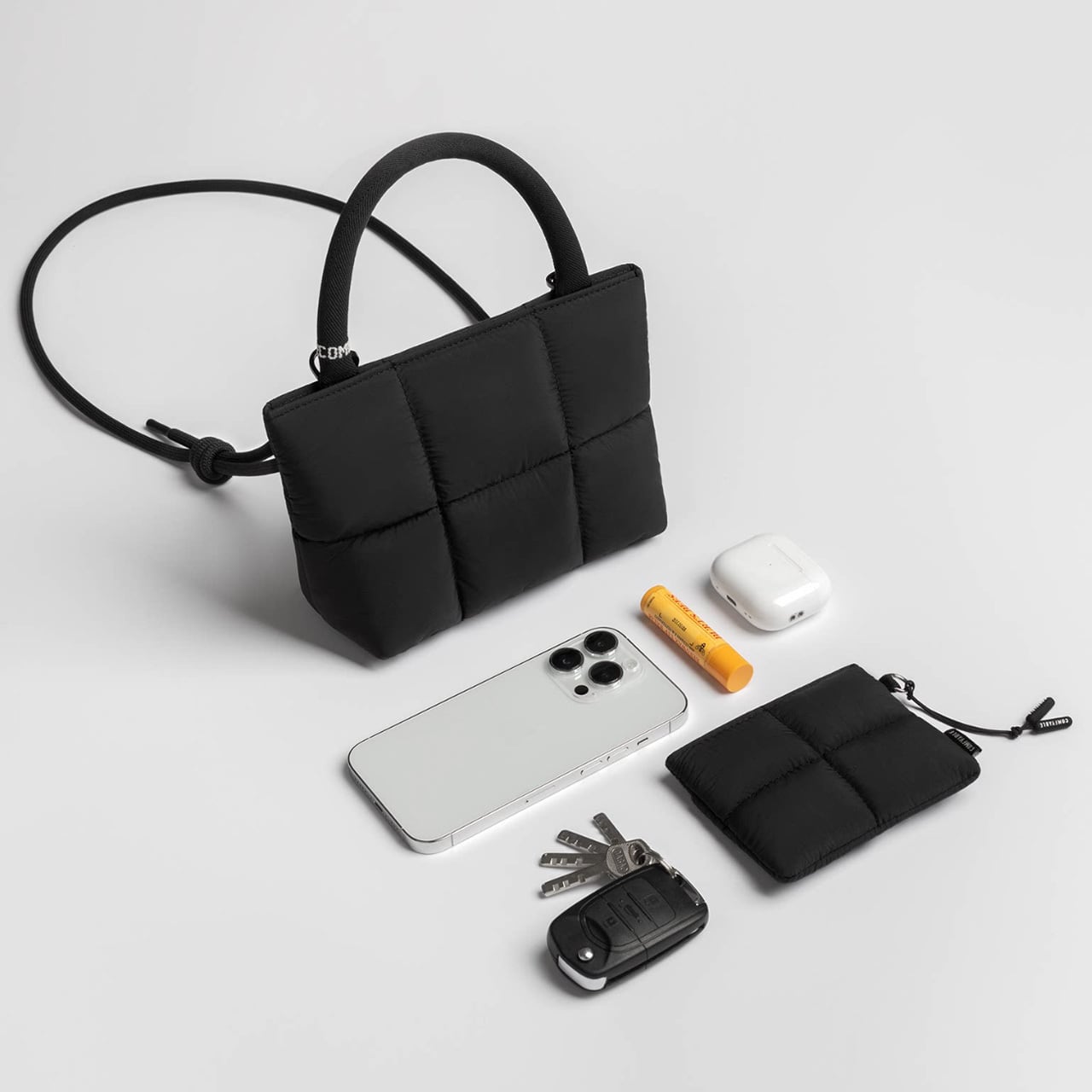 撥水加工を施したナイロン素材を採用。 約150gと超軽量ながらスマホや財布、ポーチ等の必需品がしっかり収まる、見た目以上の収納力。 手持ち・肩掛け・斜め掛けの3WAY仕様で、デイリーから旅行のサブバッグまで幅広く活躍します。 *実物のハンドル部分にはロゴが入ります。 ■Size(cm) 本体:W20, H14, D8 重量:150g(超軽量) Shoulder:80cm〜150(調節・取り外し可能) *多少の誤差が生じる場合がございます。 ■Material 表地 Nylon:100% | 裏地 Nylon:100% 中綿 Polyester:100% ■Color(8色) Black Mint Snow white Silver Brown Dusty Pink Dusty blue Lavender ■お届けについて ・通常1〜2週間前後でお届けいたします。 ・商品により3週間以上かかる場合もあります。 ・一点ずつ丁寧に検品を行い、発送いたします。 ■注意事項 ・万が一在庫切れとなった際は、速やかにご連絡の上 全額返金の手続きをさせていただきます。 ・厳格な基準に基づき検品を行っておりますが、微細な傷や汚れがある場合はご容赦ください。 ・光の当たり方やモニター環境により、実物と色合いが異なる場合がございます。 ・イメージ違いやサイズ相違等、お客様のご都合による返品・交換・キャンセルは承っておりません。 上記をご理解の上、お買い物をお楽しみください。 ———————————— ■ご購入前にこちらをお読みください →https://official.uaenstudio.com/about ■TOP →https://official.uaenstudio.com