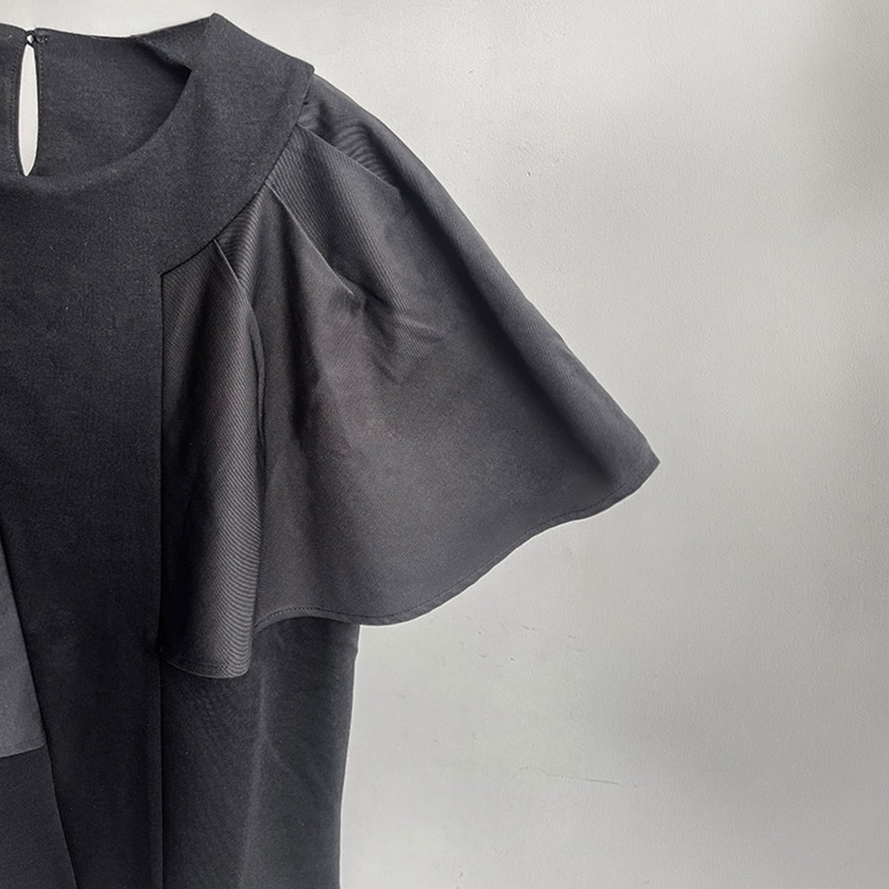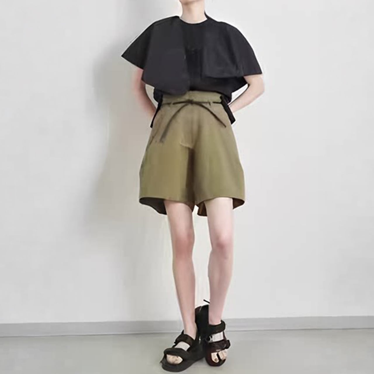 カットソーと布帛の異素材コンビネーションです。